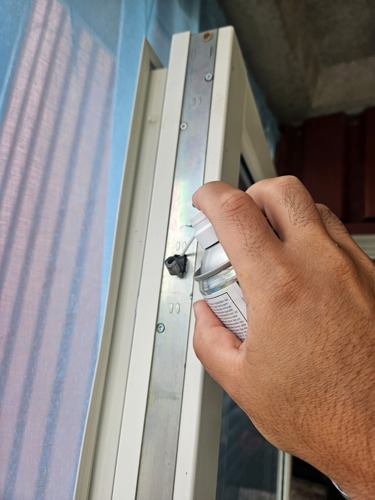 Använd teflonspray/PTFE-spray (finns i vanliga bygg- och järnhandelsbutiker) på gångjärn och rörliga delar.