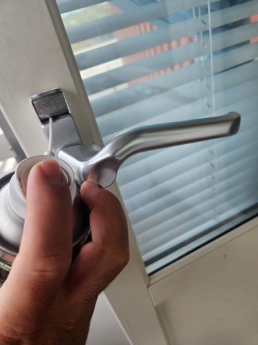 Det har inkommit flera felanmälningar för att fönstren i badrummet inte längre går att stänga ordentligt. Därför vill vi påminna om att det är viktigt att smörja fönstrens gångjärn och rörliga beslag regelbundet, gärna minst några gånger per år, så att de inte blir stela och riskerar att gå sönder. Se gärna på bilderna nedan för att se var ni kan spraya och med vilken typ av smörjmedel som passar.